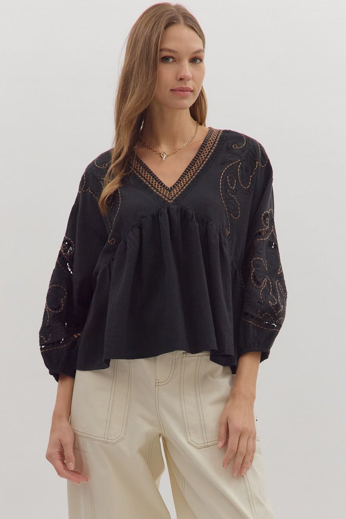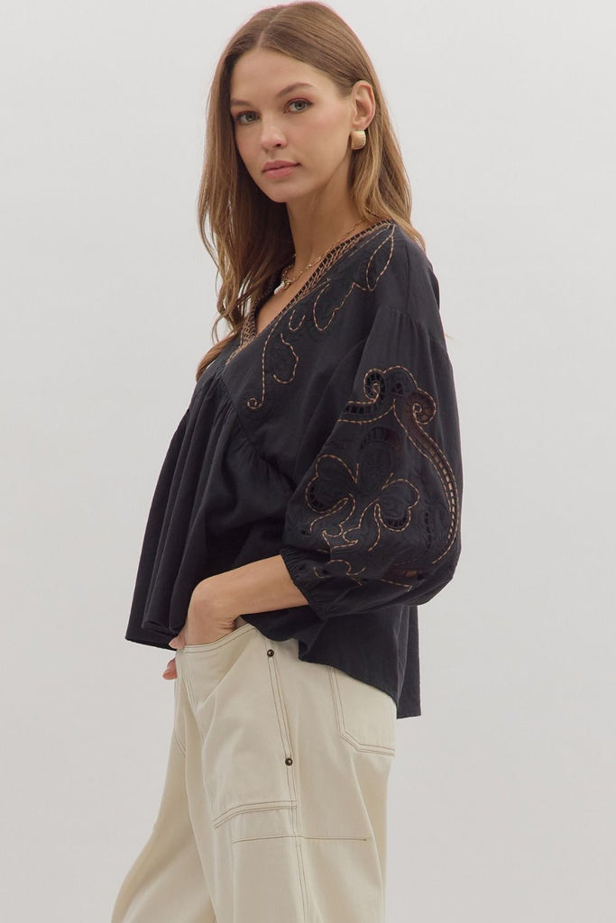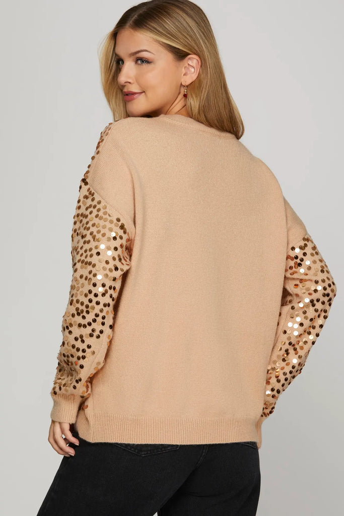 Chocolate Fuchsia Contrast Stitch Puff Sweater