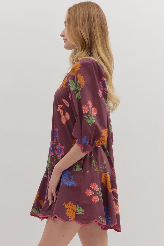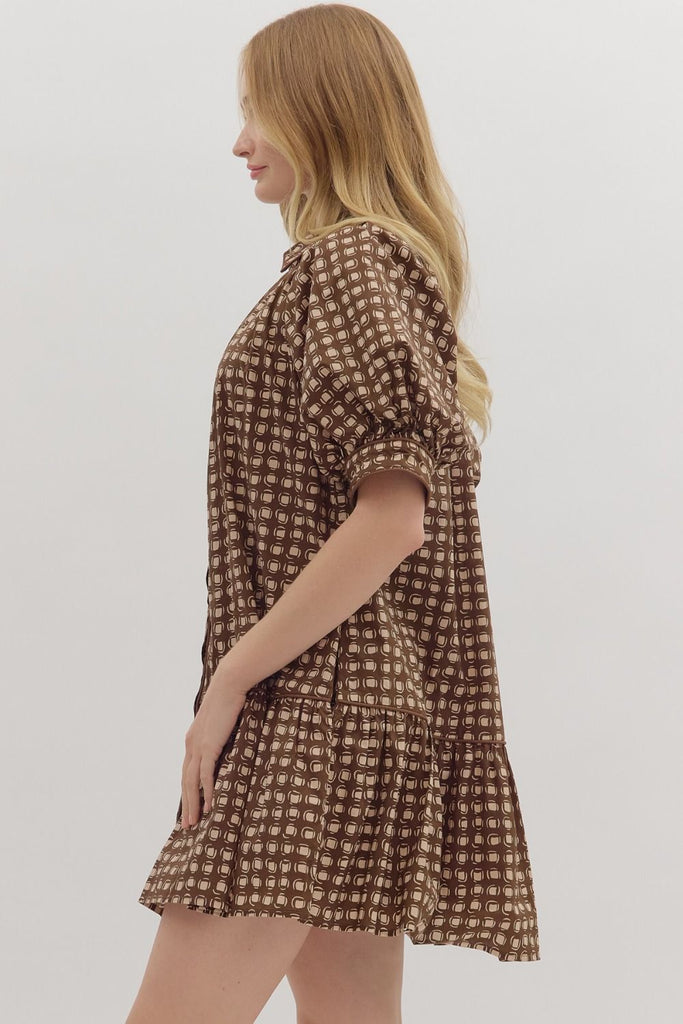 Eyelet Embroidered Button Down Mini Shirt Dress