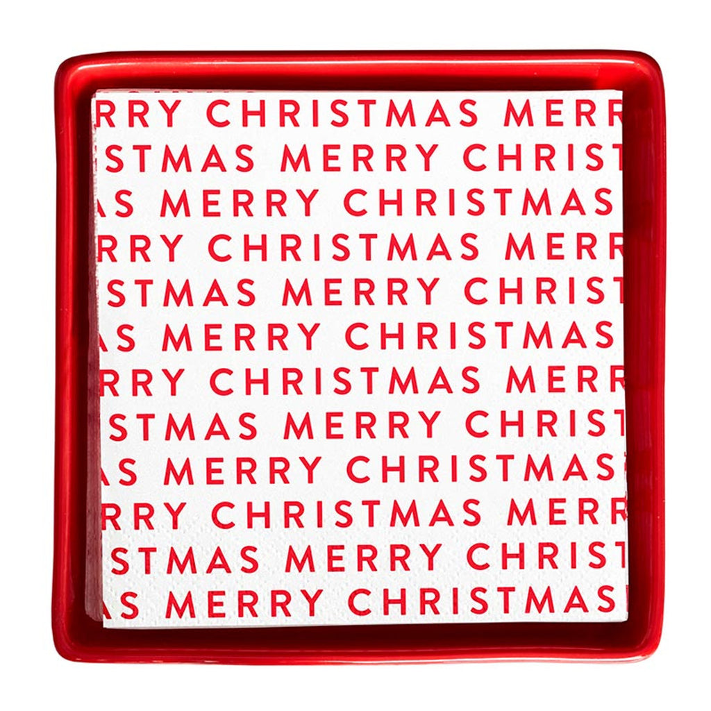Merry Christmas Napkins and Ceramic Tray